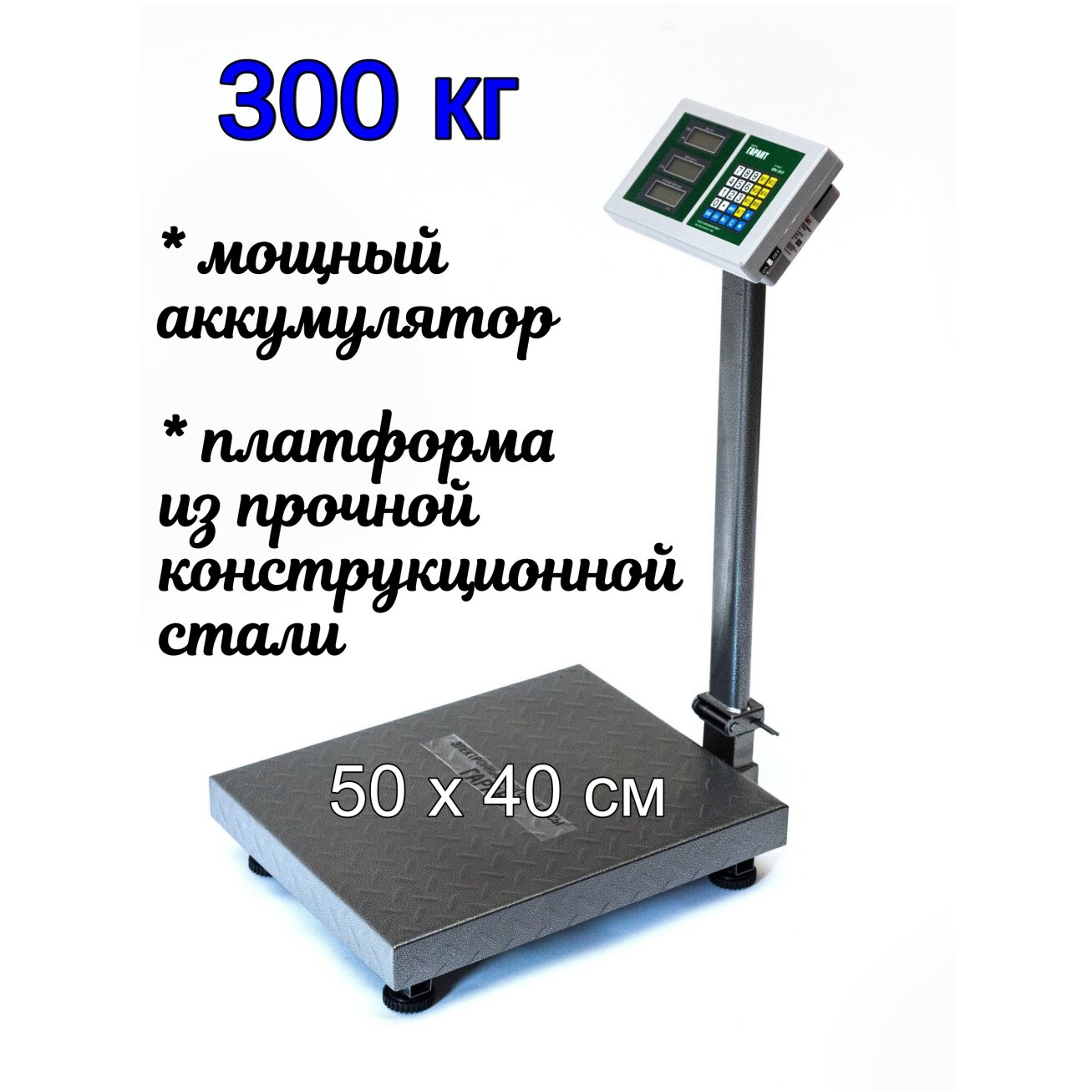 Весы торговые электронные напольные ВПН-300У до 300 кг, складная стойка, платформа 50х40 см, серый информация: