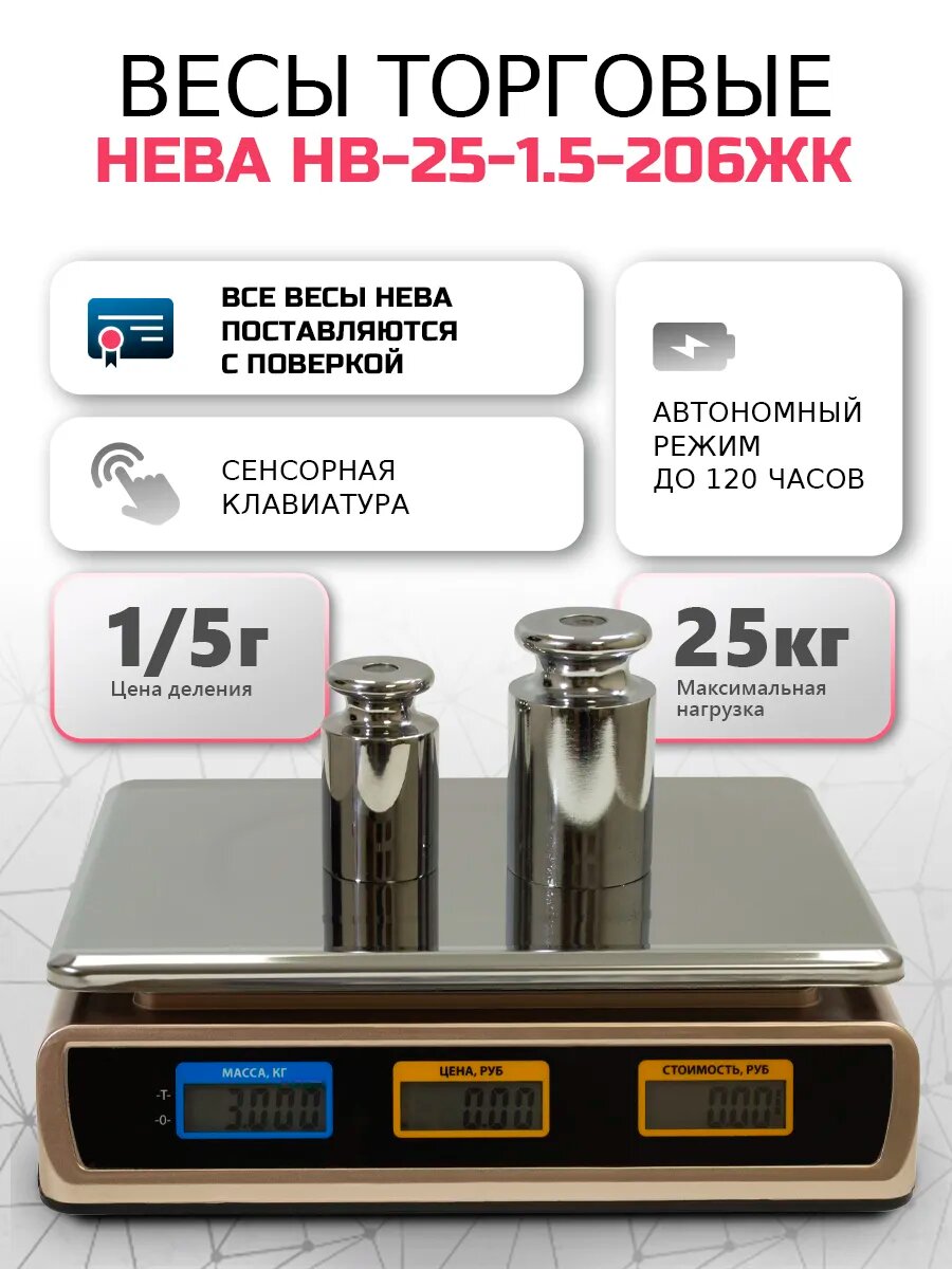 Торговые весы Нева, нержавеющая сталь, фасовочные, 5-25кг, точность 1/5г, поверка информация: