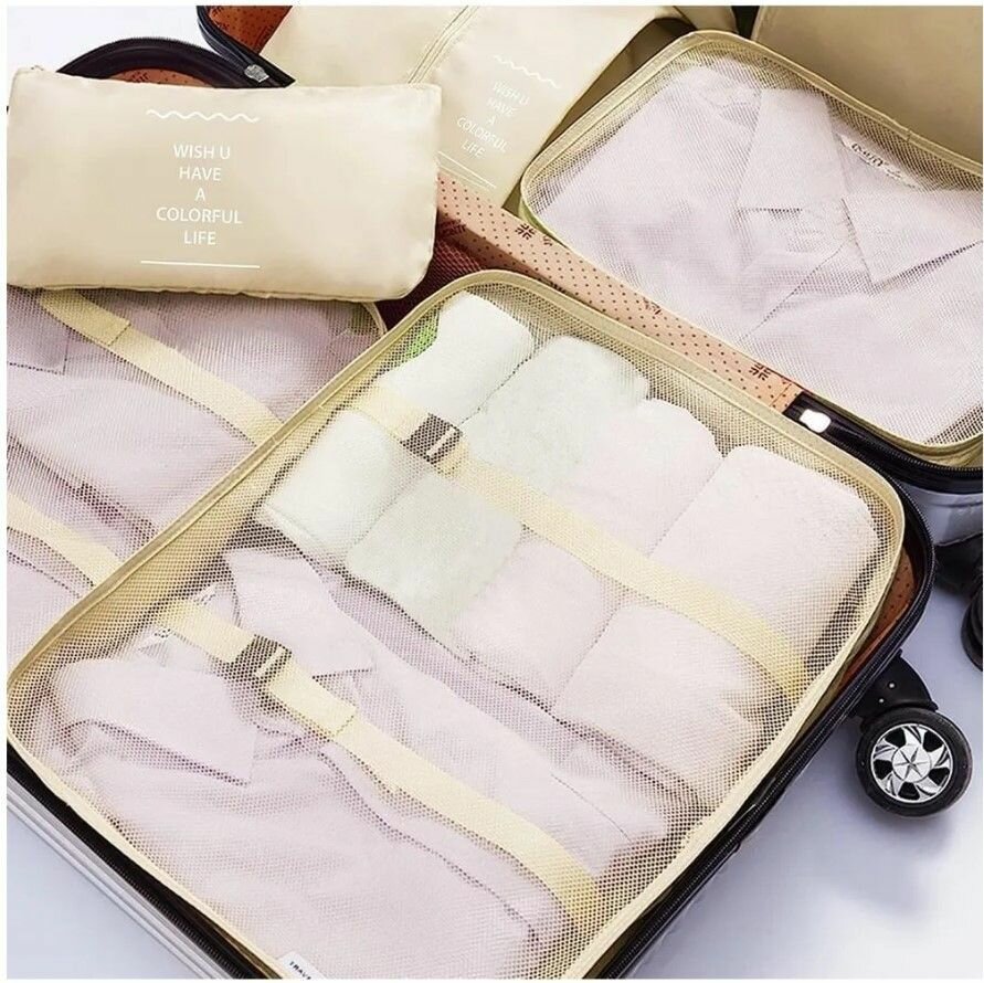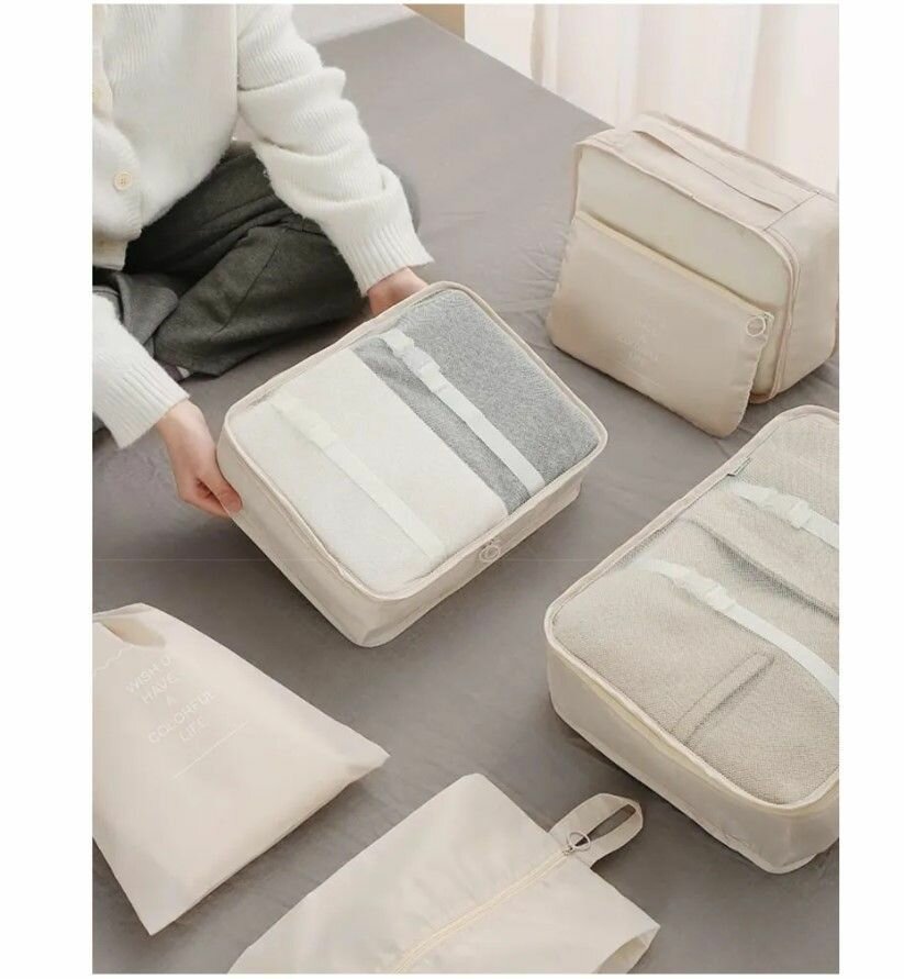 Отзывы на Большой набор из 7 дорожных органайзеров / Комплект сумок для размещения вещей в чемодане, для хранения в шкафу бежевые