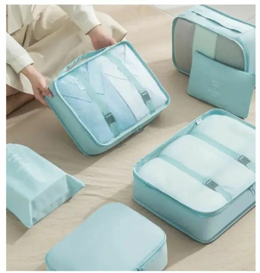 Отзывы на Большой набор из 7 дорожных органайзеров / Комплект сумок для размещения вещей в чемодане, для хранения в шкафу голубые