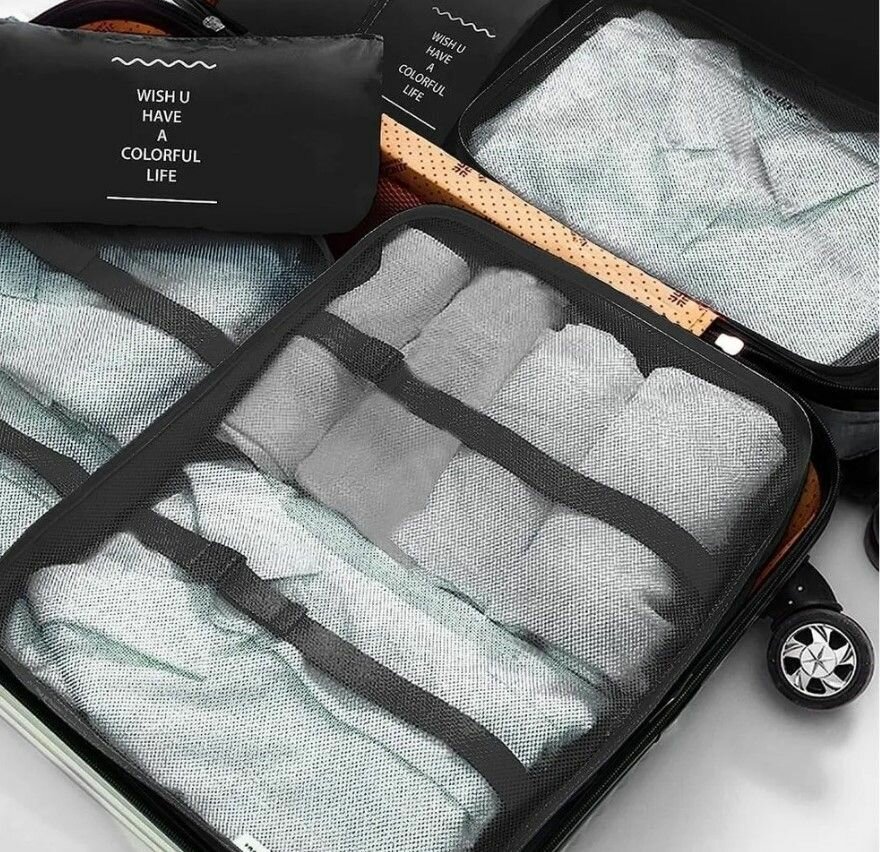 Отзывы на Большой набор из 7 дорожных органайзеров / Комплект сумок для размещения вещей в чемодане, для хранения в шкафу черные