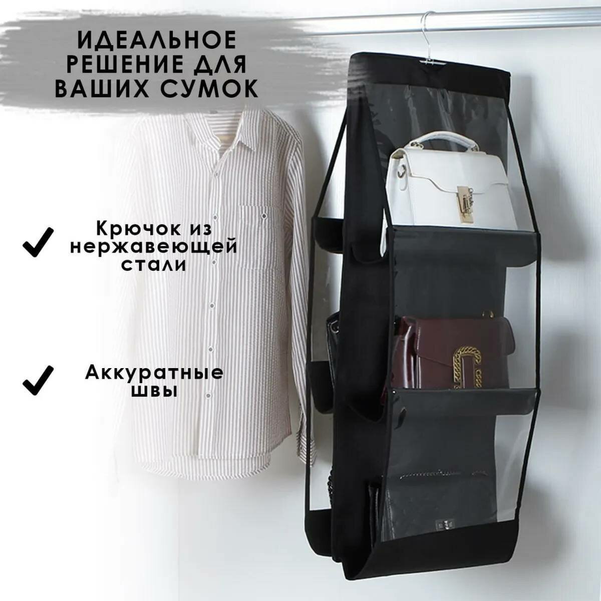 Органайзер подвесной двусторонний для хранения сумок, 6 секций, черный информация: