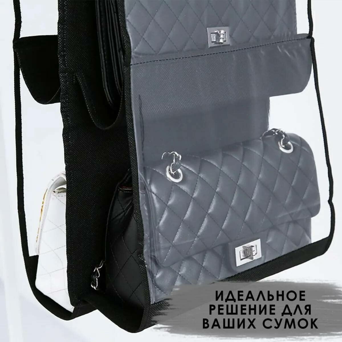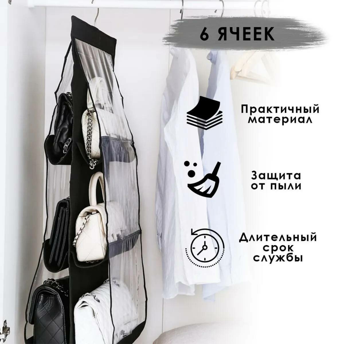 10 цен на Органайзер подвесной двусторонний для хранения сумок, 6 секций, черный