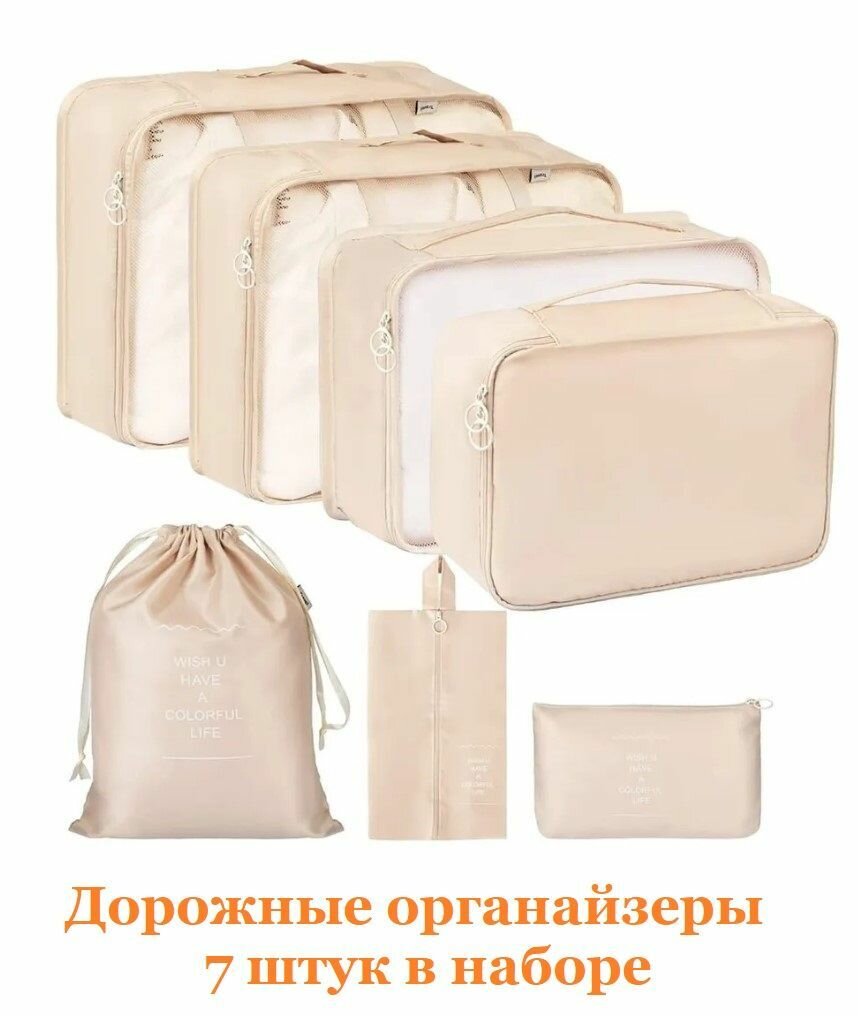 10 цен на Набор органайзеров дорожных 7 штук / Система хранения вещей в шкафу, для размещения в чемодане бежевый