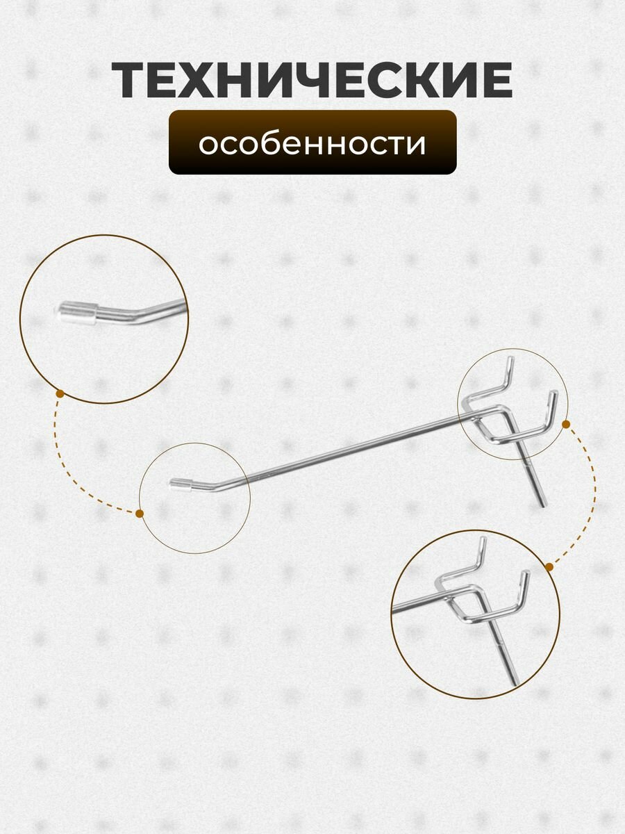 Крючки для перфорации, перфорированной панели, органайзера( одинарный, длина 100мм, хром)-10 шт 670 ₽