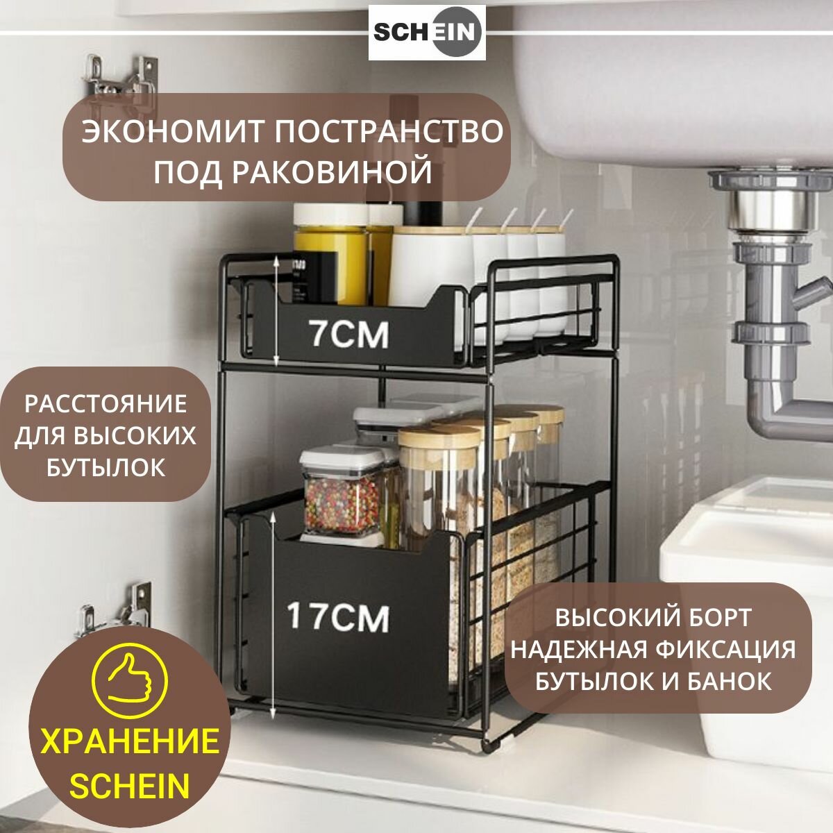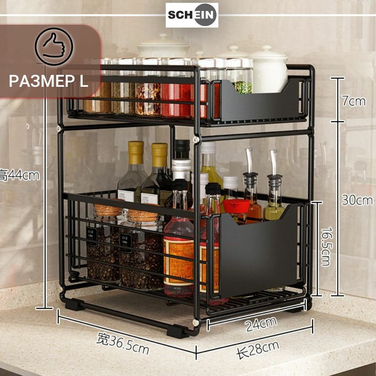 10 цен на Органайзер для хранения, полка стеллаж выдвижной металл черная большая под мойку для кухни ванной