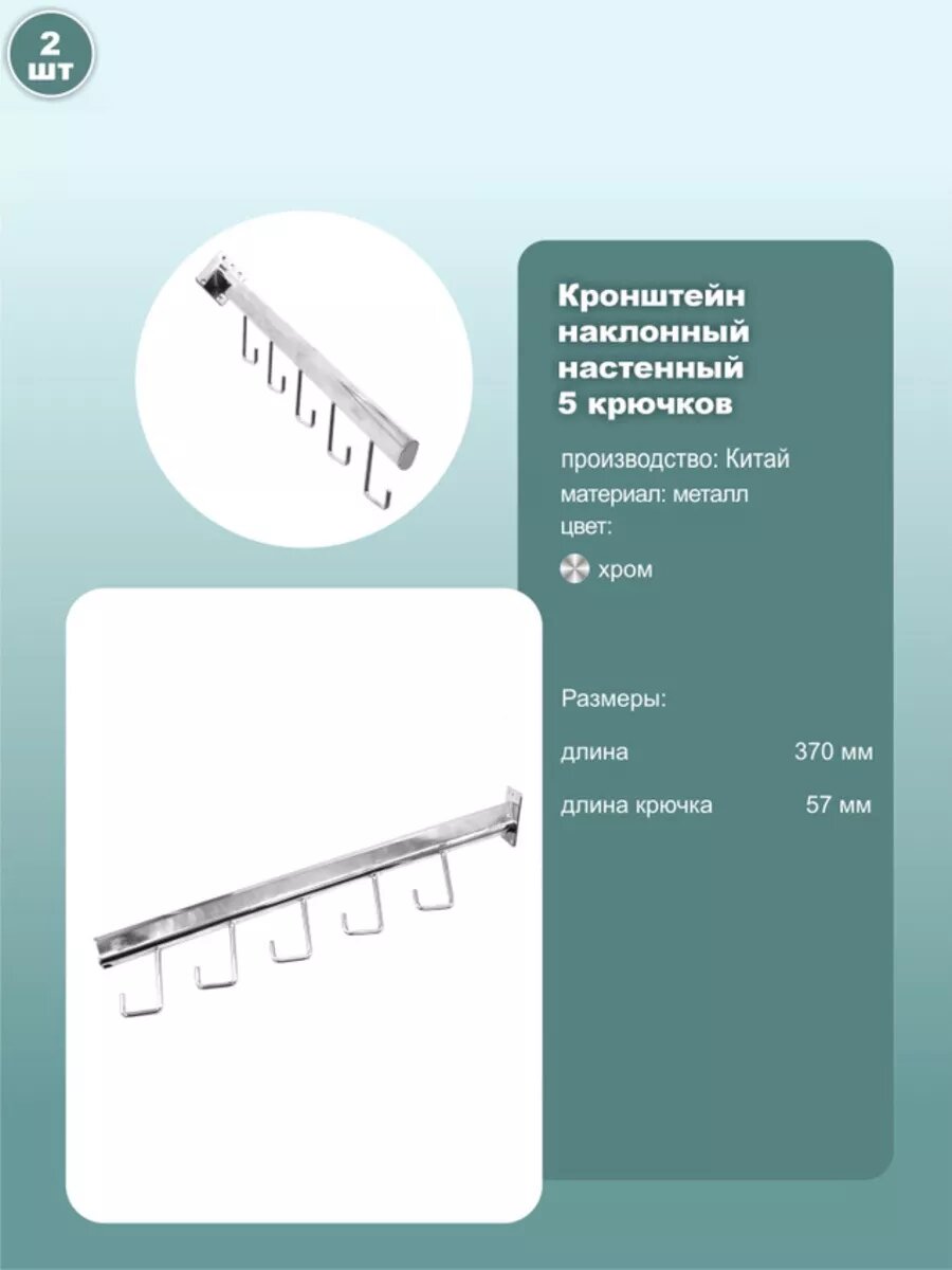 Кронштейн настенный наклонный 5 крючков, 370мм, хром, 2шт. информация: