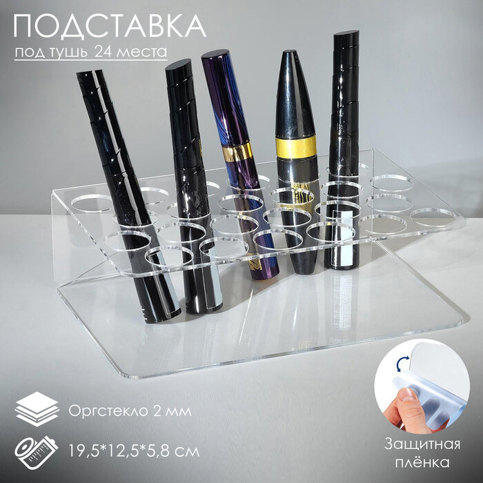 Подставка под тушь на 24 позиции 19.5×12.5×5.8 см, оргстекло 2 см, В защитной плёнке информация: