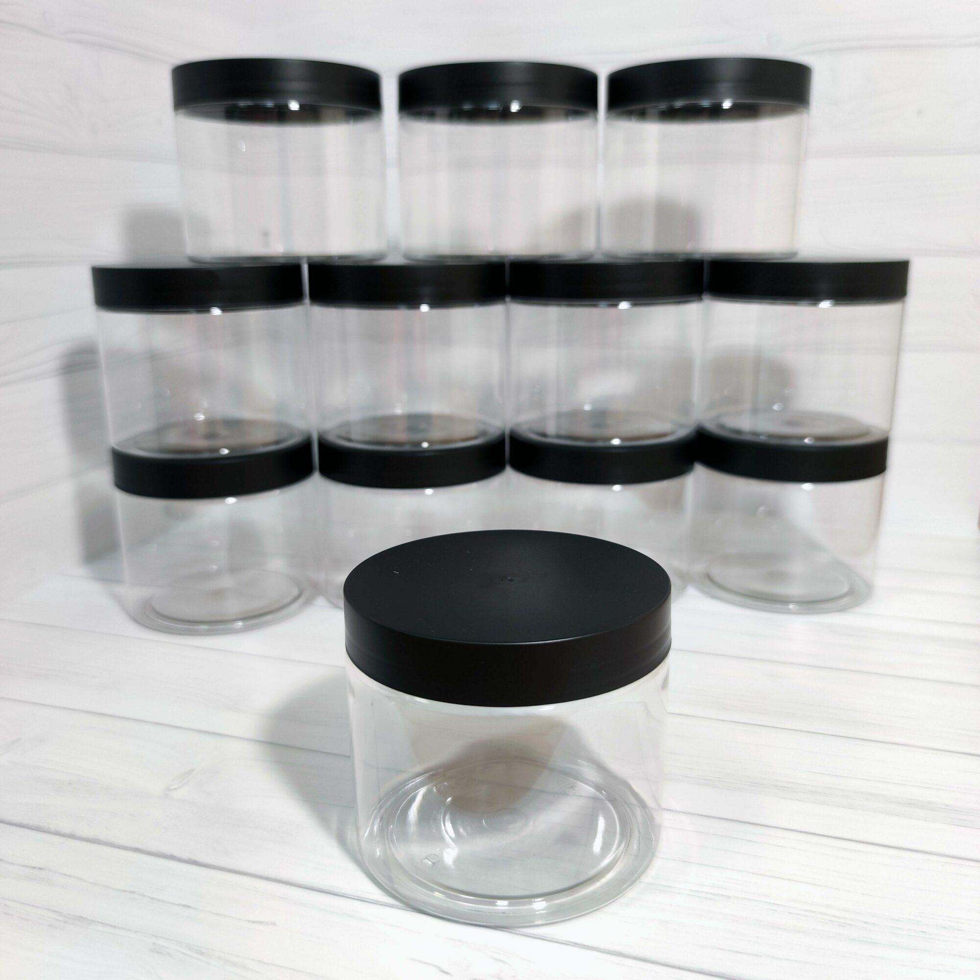 Банки пластиковые для хранения универсальные с чёрной крышкой - 380 мл - 12 шт информация: