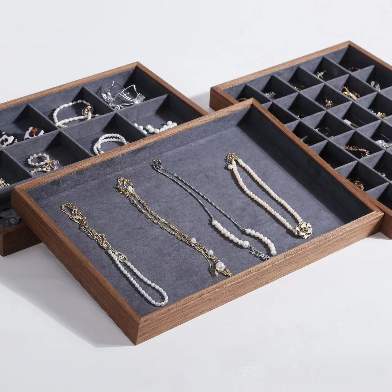 Шкатулка Chinese craft, для ювелирных изделий, из орехового дерева, 24 ячейки, темно-серая 1 785 ₽
