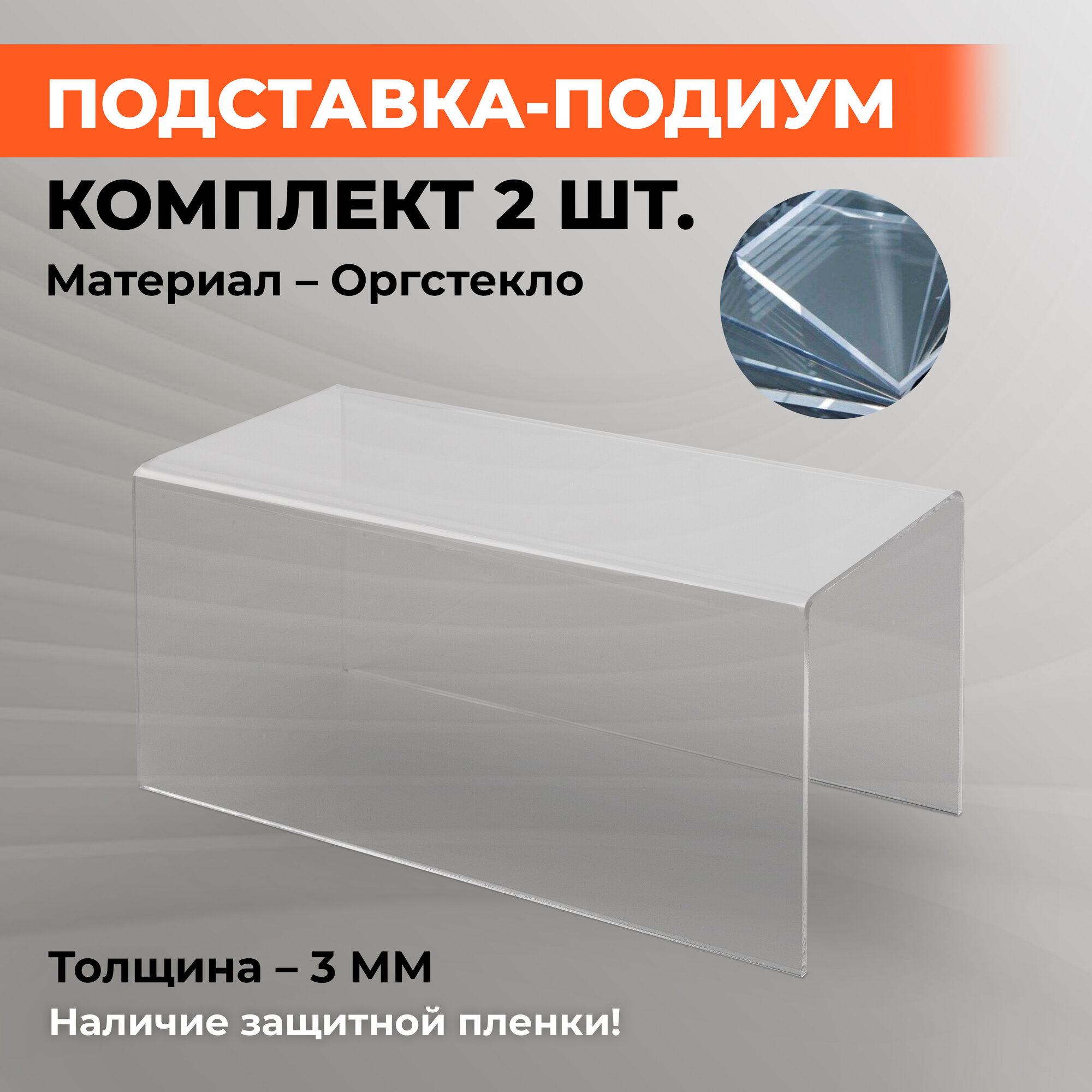 Подставка-подиум, прозрачная, настольная, 300x100 мм, высота 150 мм, толщина 3 мм, 2 штуки информация: