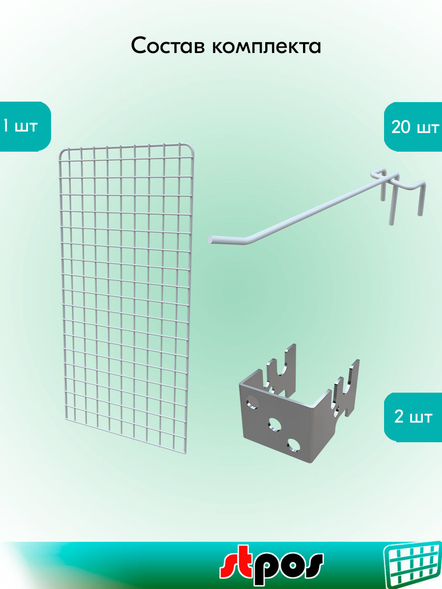 Отзывы на КОМПЛЕКТ Сетка 700х350мм с П-окантовкой, RAL9016 Белый+Крючок одинарный 200мм, d5, шаг 50мм-20 шт+Скобы SLN025