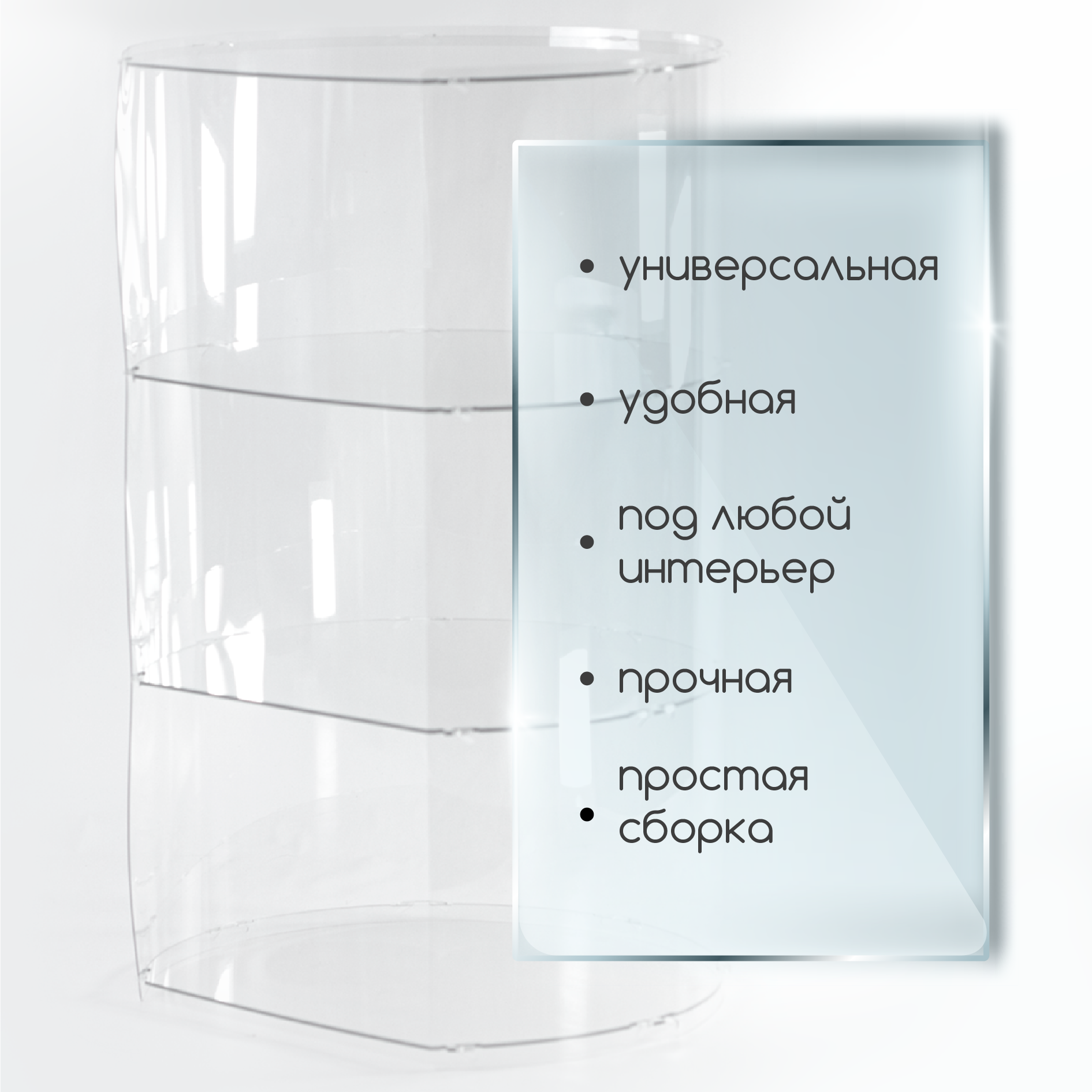 Витрина универсальная из оргстекла с 3-мя полками круглая информация:
