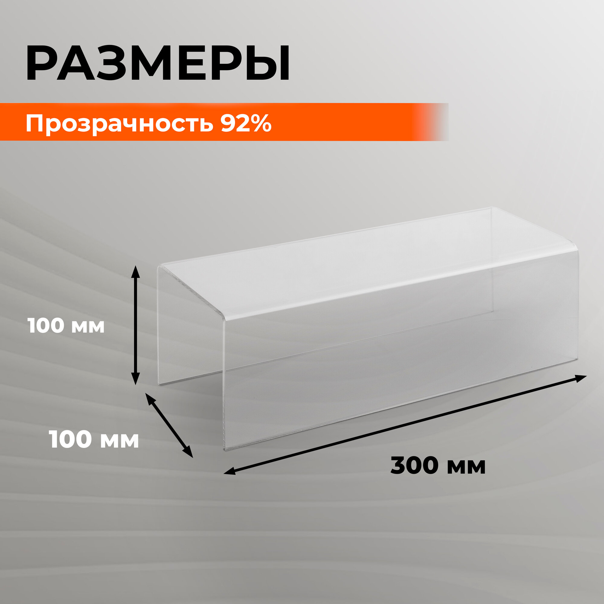Подставка-подиум, прозрачная, настольная, 300x100 мм, высота 100 мм, толщина 2 мм 1 166 ₽