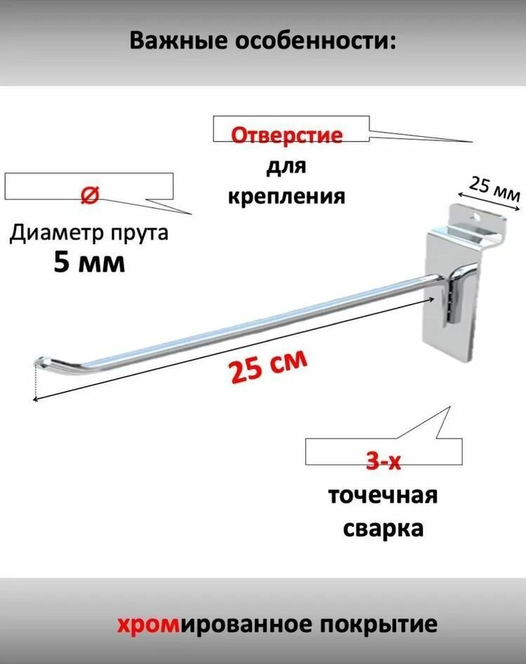 Крючки хромирование длиной 250 мм для эконом панели или установка на эконом панель - 20 шт информация: