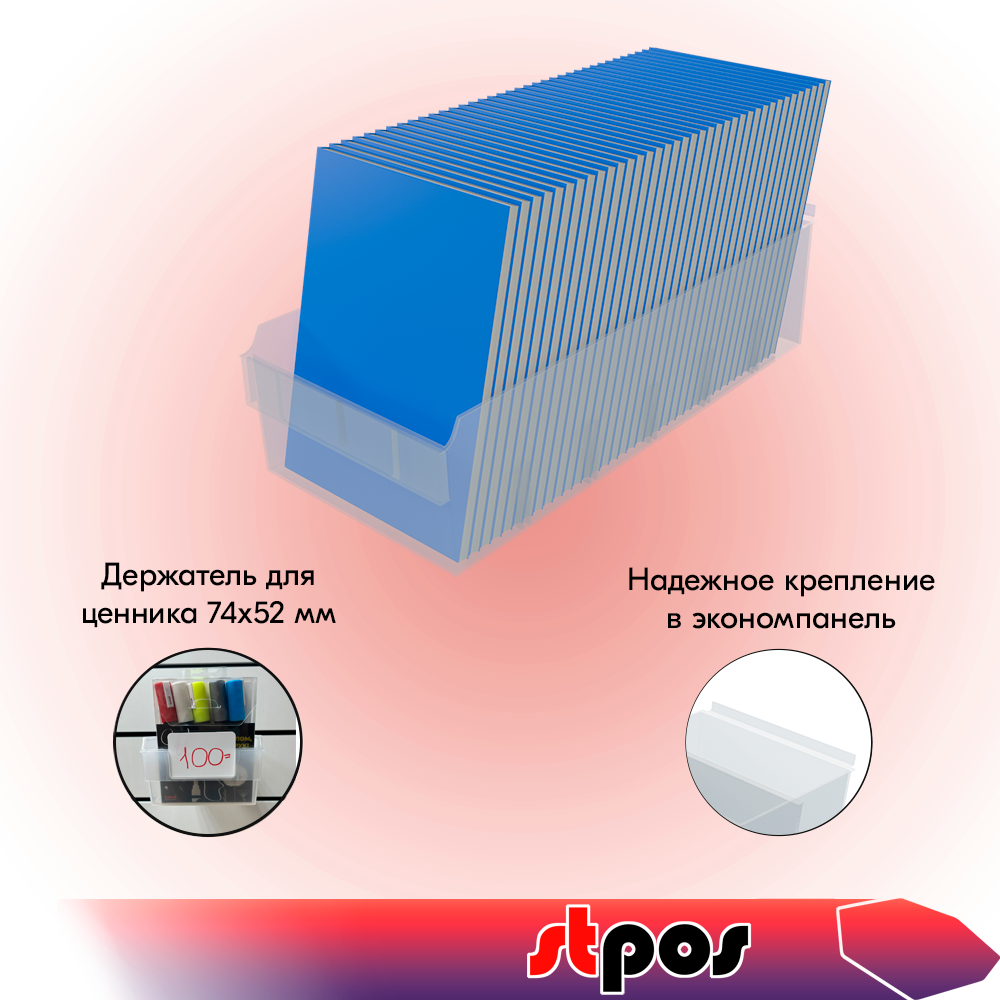 Отзывы на КОМПЛЕКТ Накопитель подвесной для экономпанели, 335x140x95мм, пластиковый, Прозрачный 10 шт