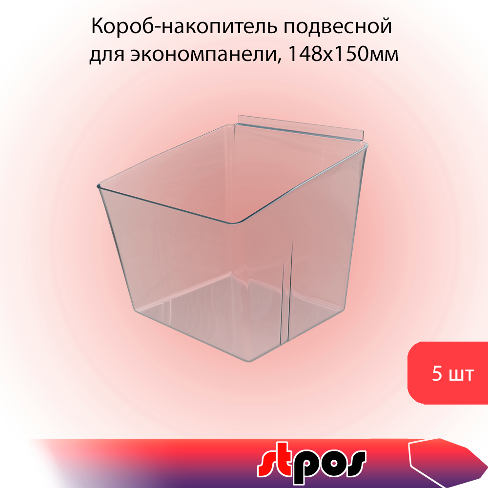 КОМПЛЕКТ Контейнер подвесной для экономпанели, 148х150х150мм, Прозрачный - 5 шт информация: