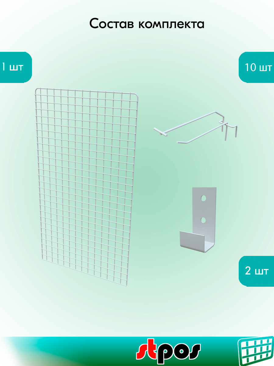 Отзывы на КОМПЛЕКТ Сетка 1200х600 с П-окантовкой, Белый+Крючки одинарные с ц/д 175 мм, d4/d4, шаг 50мм, Белый - 10 шт+Кронштейны