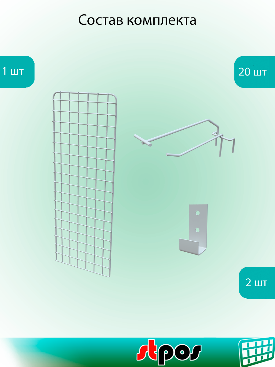 Отзывы на КОМПЛЕКТ Сетка 700х250 с П-окантовкой, Белый+Крючки одинарные с ц/д 150мм, d4/d4, шаг 50мм, Белый 20 шт+Кронштейны