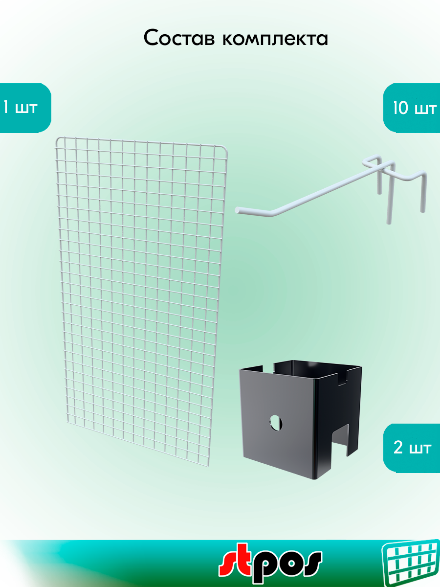 Отзывы на КОМПЛЕКТ Сетка 1200х600 с П-окантовкой, RAL9016, Белый+ Крючок одинарный 150мм, d4, шаг 50-10шт+Скоба MS19