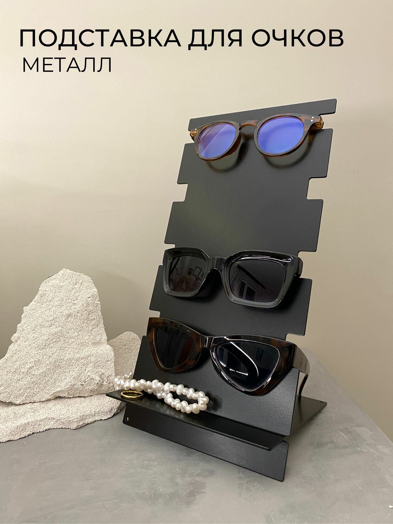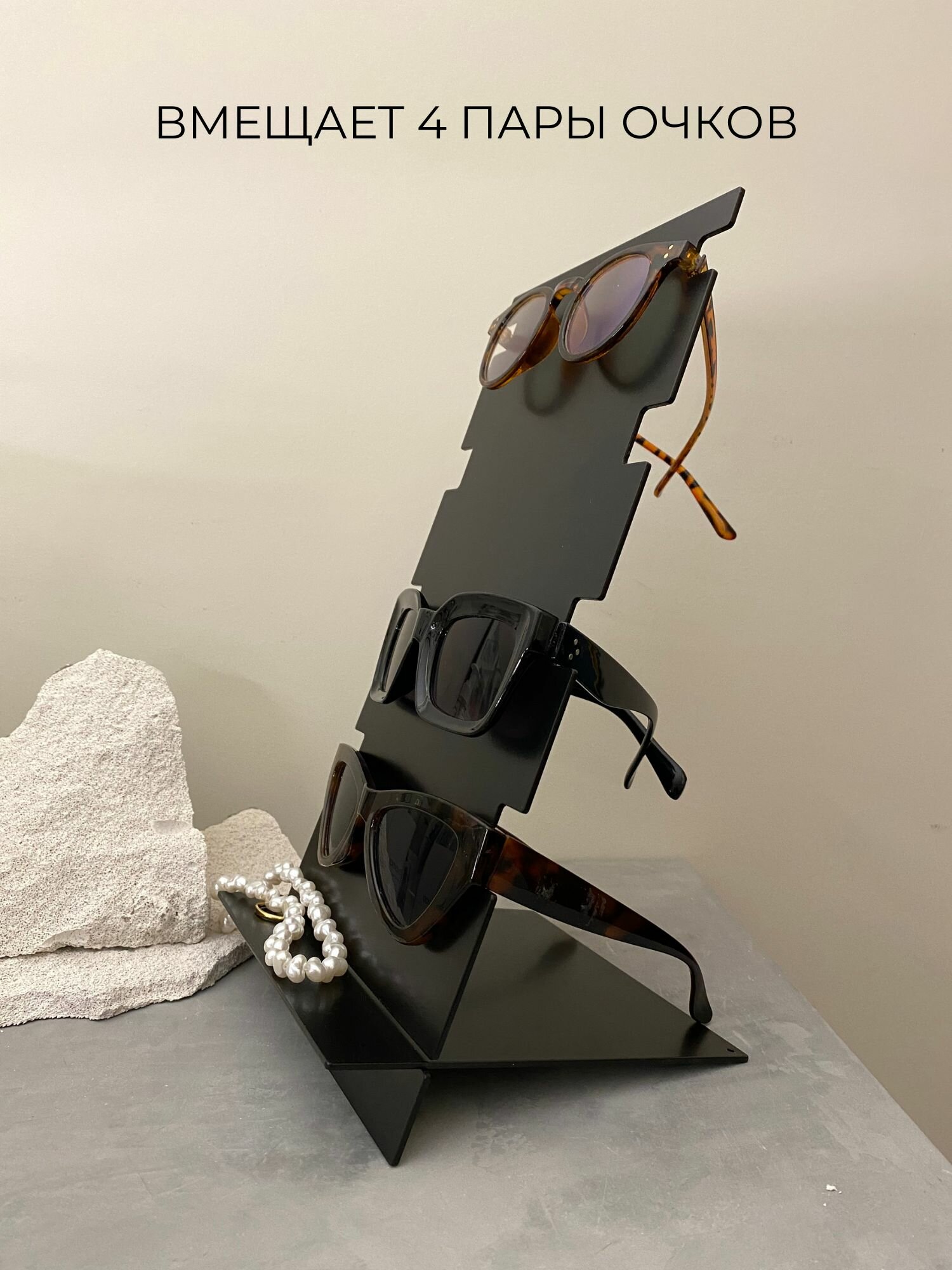 Подставка для очков металлическая с полочкой 4 пары информация: