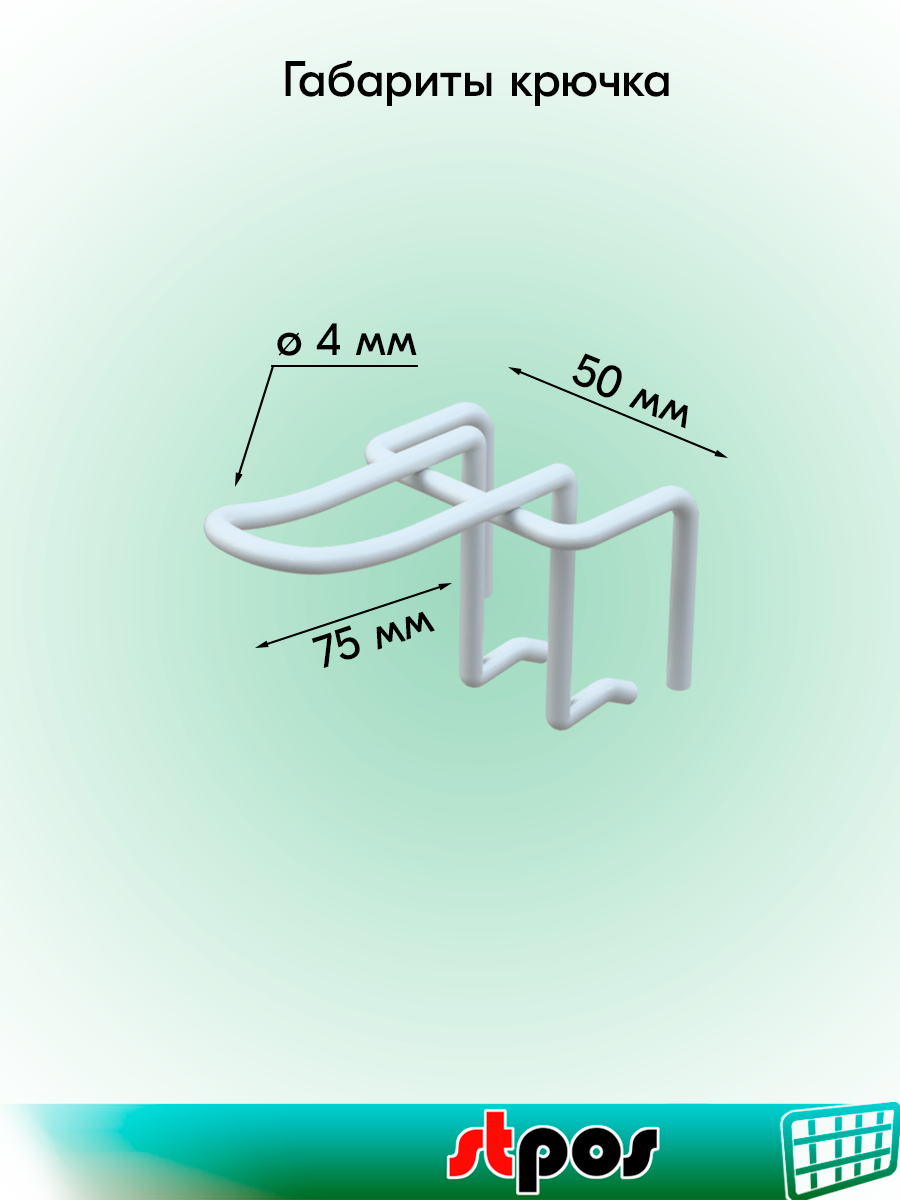 Отзывы на КОМПЛЕКТ Сетка 1200х600 с П-окантовкой, RAL9016, Белый+Крючок двойной 75мм с зацепом, d4, шаг 50мм-10шт+Скоба SLN025-2шт
