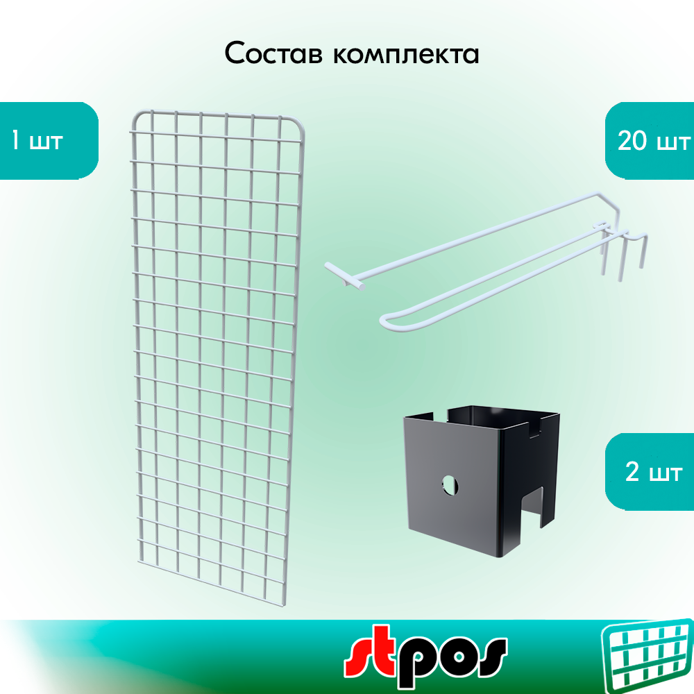 10 цен на КОМПЛЕКТ Сетка 700х250 с П-окантовкой, Белый+ Крючки на сетку двойные с ц/д 275мм, d4/4, шаг 50, Белый-20 шт+Скобы MS19