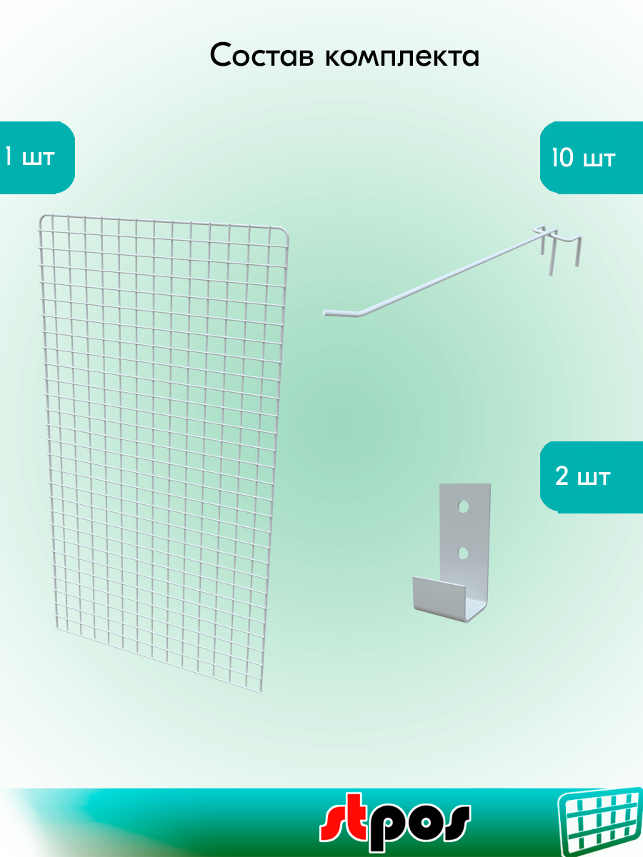 Отзывы на КОМПЛЕКТ Сетка 1200х600 с П-окантовкой, Белый+Крючки одинарные 275 мм, d4, шаг 50мм, Белый - 10 шт+Кронштейны