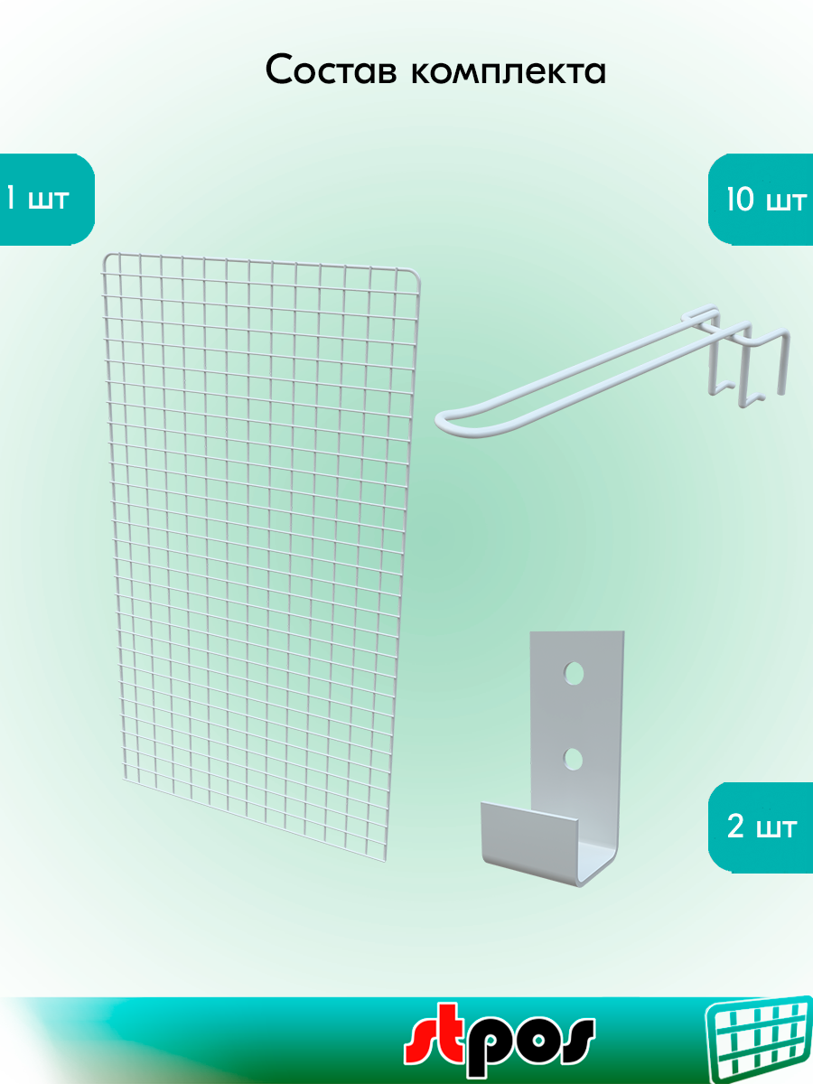 Отзывы на КОМПЛЕКТ Сетка 1200х600 с П-окантовкой, RAL9016, Белый + Крючки двойные с зацепом 175мм, d4, шаг 50мм-10 шт + Кронштейн