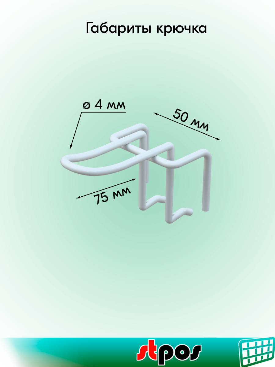 Отзывы на КОМПЛЕКТ Сетка 1200х600 с П-окантовкой, RAL9016, Белый+Крючок двойной 75мм с зацепом, d4, шаг 50мм-20 шт+Скоба MS19