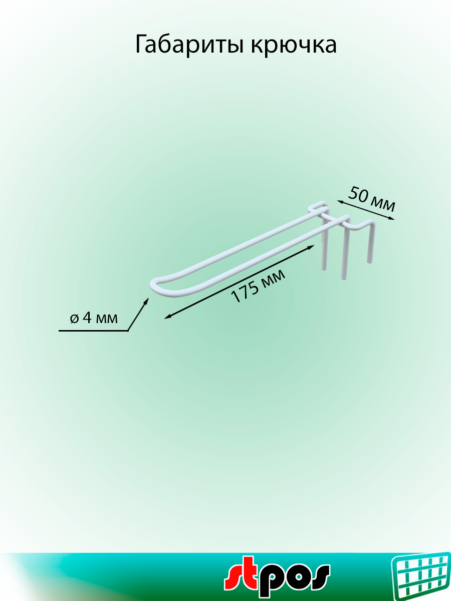 КОМПЛЕКТ Сетка 1200х600 с П-окантовкой, Белый+Крючки одинарные 175 мм, d4, шаг 50мм, Белый - 10 шт+Кронштейны информация:
