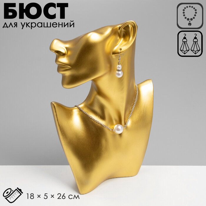 10 цен на Бюст для украшений QF, пол-лица, отверстие под серьгу, 18×5×26, цвет золото
