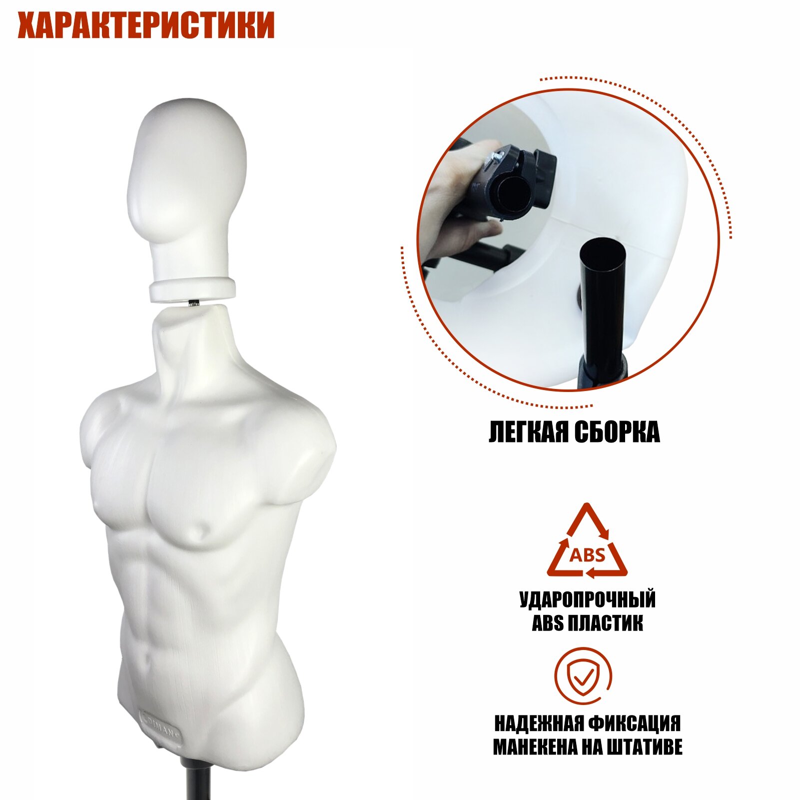 Характиристики этого товара не найдены!Отзывы на Манекен белый, торс мужской с головой, для шапок и одежды, на напольной стойке JBH