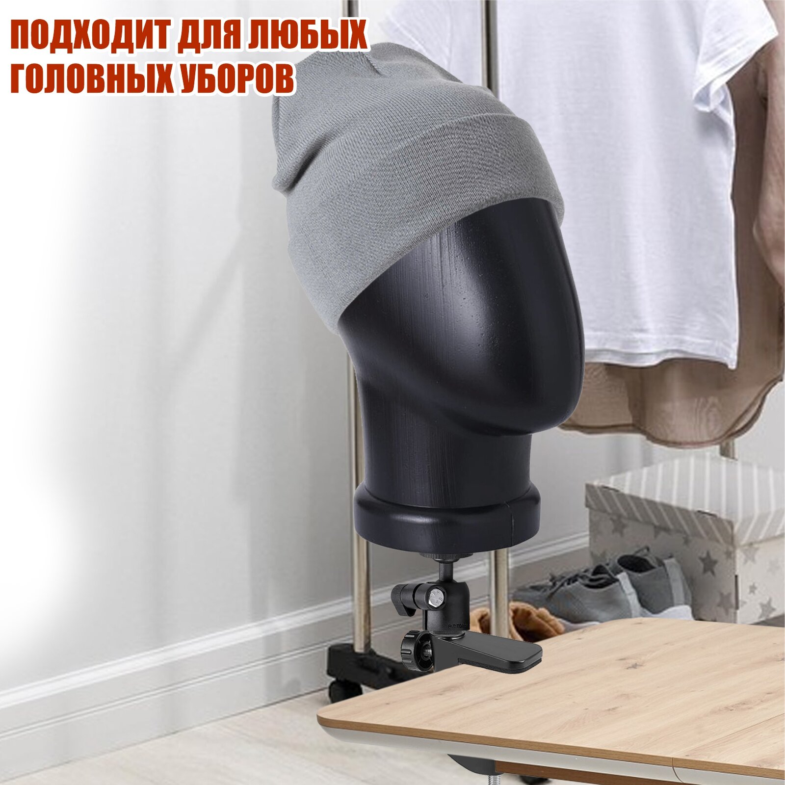 10 цен на Манекен головы черный безликий на усиленной струбцине SH-US