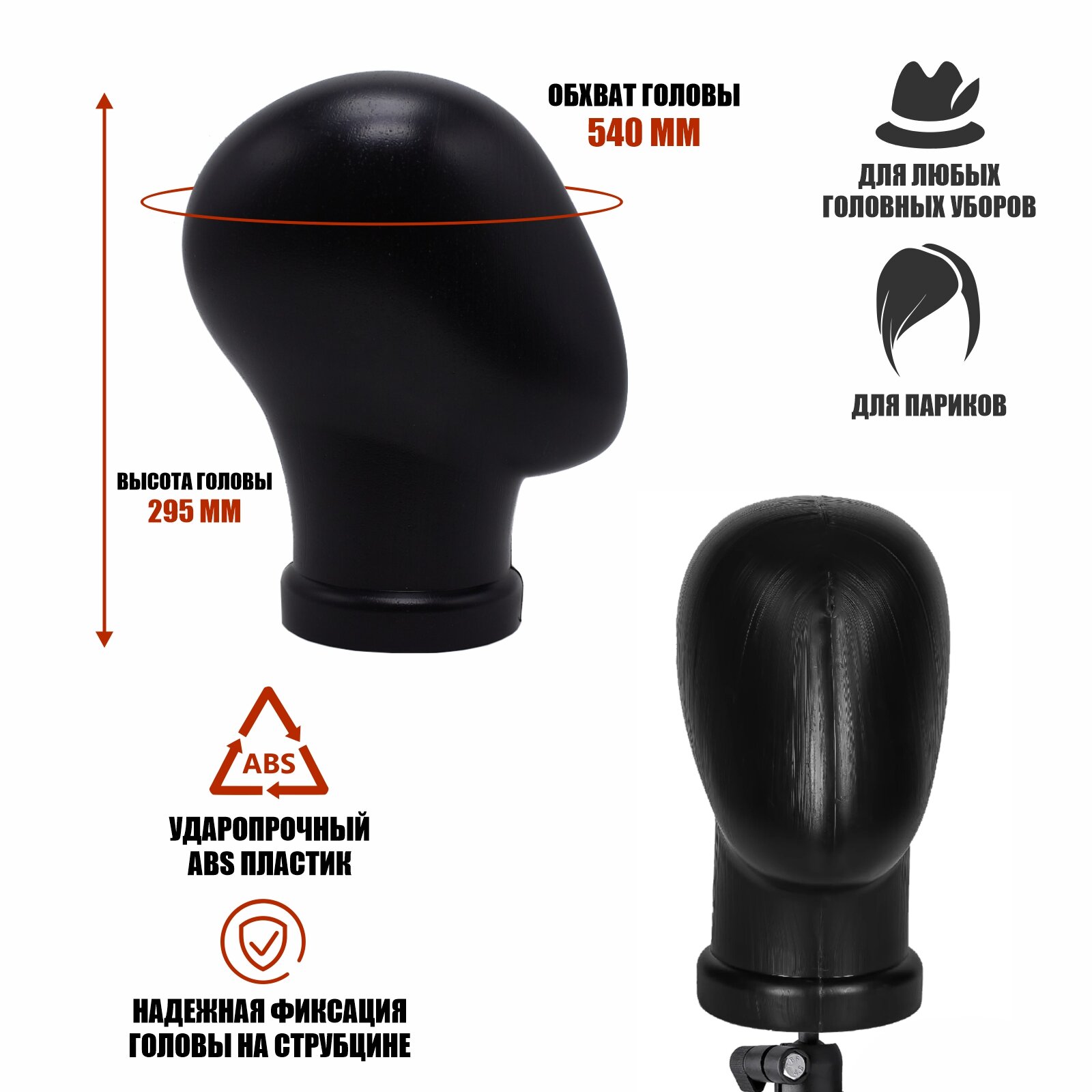 Манекен головы черный безликий на усиленной струбцине SH-US информация: