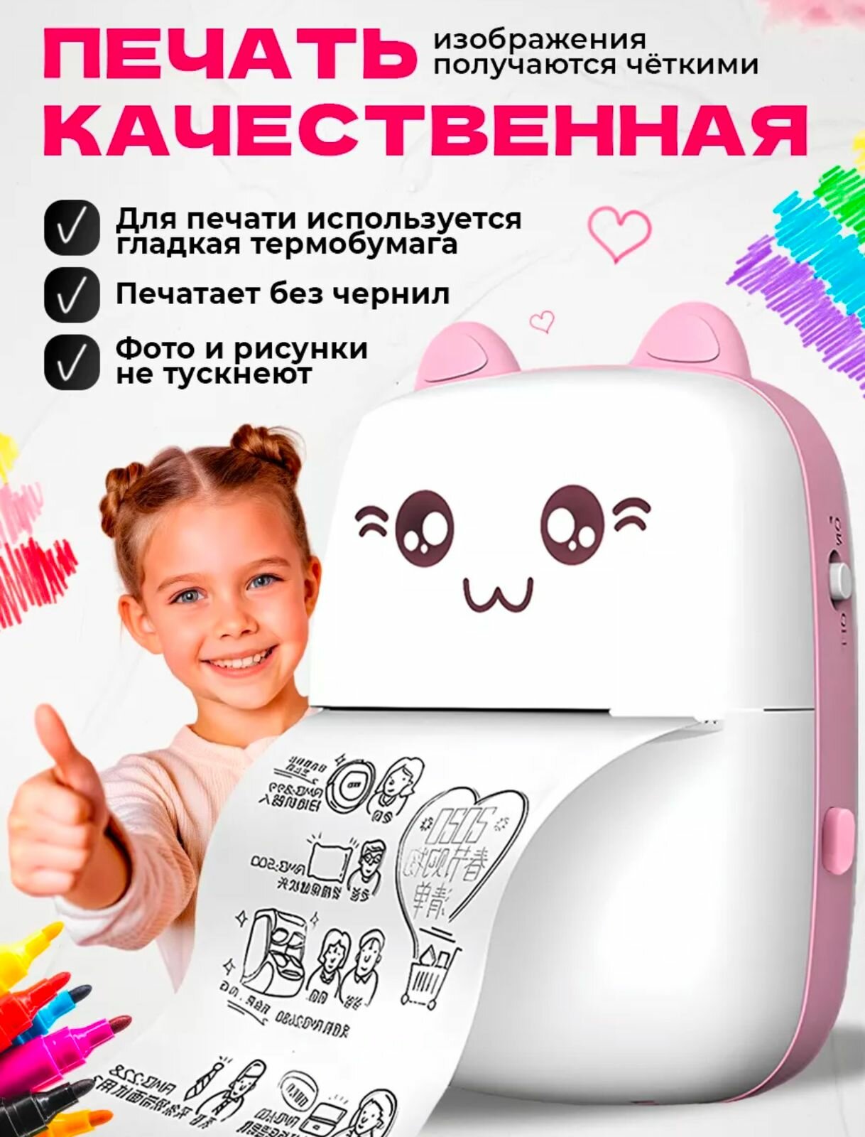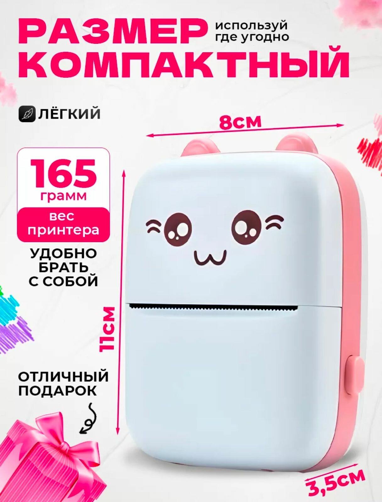 Мини-принтер, для детей, Bluetooth, USB, переносной, синий информация: