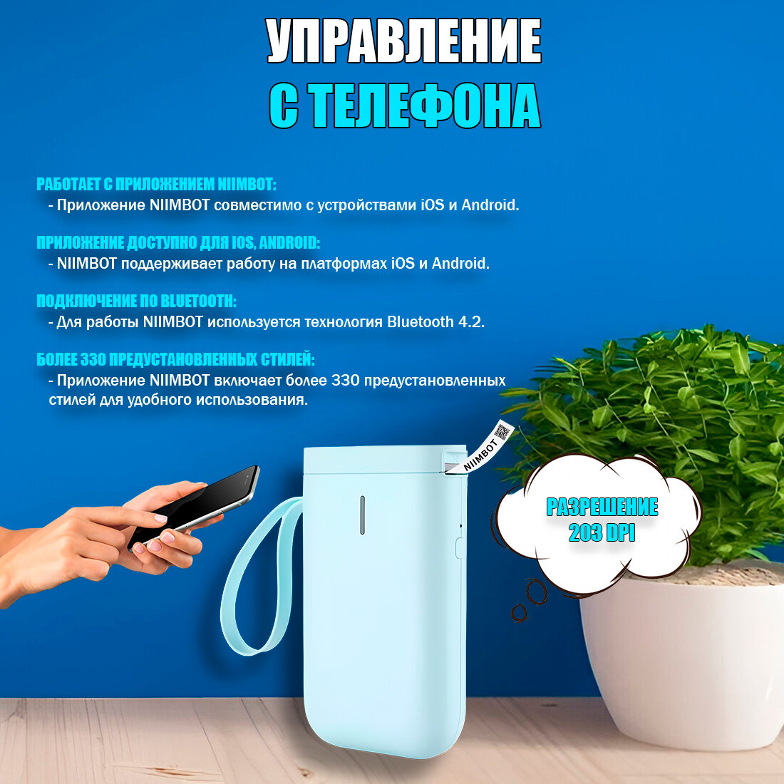 10 цен на Термопринтер Niimbot D11 H (синий), Bluetooth 4.2, термопечать