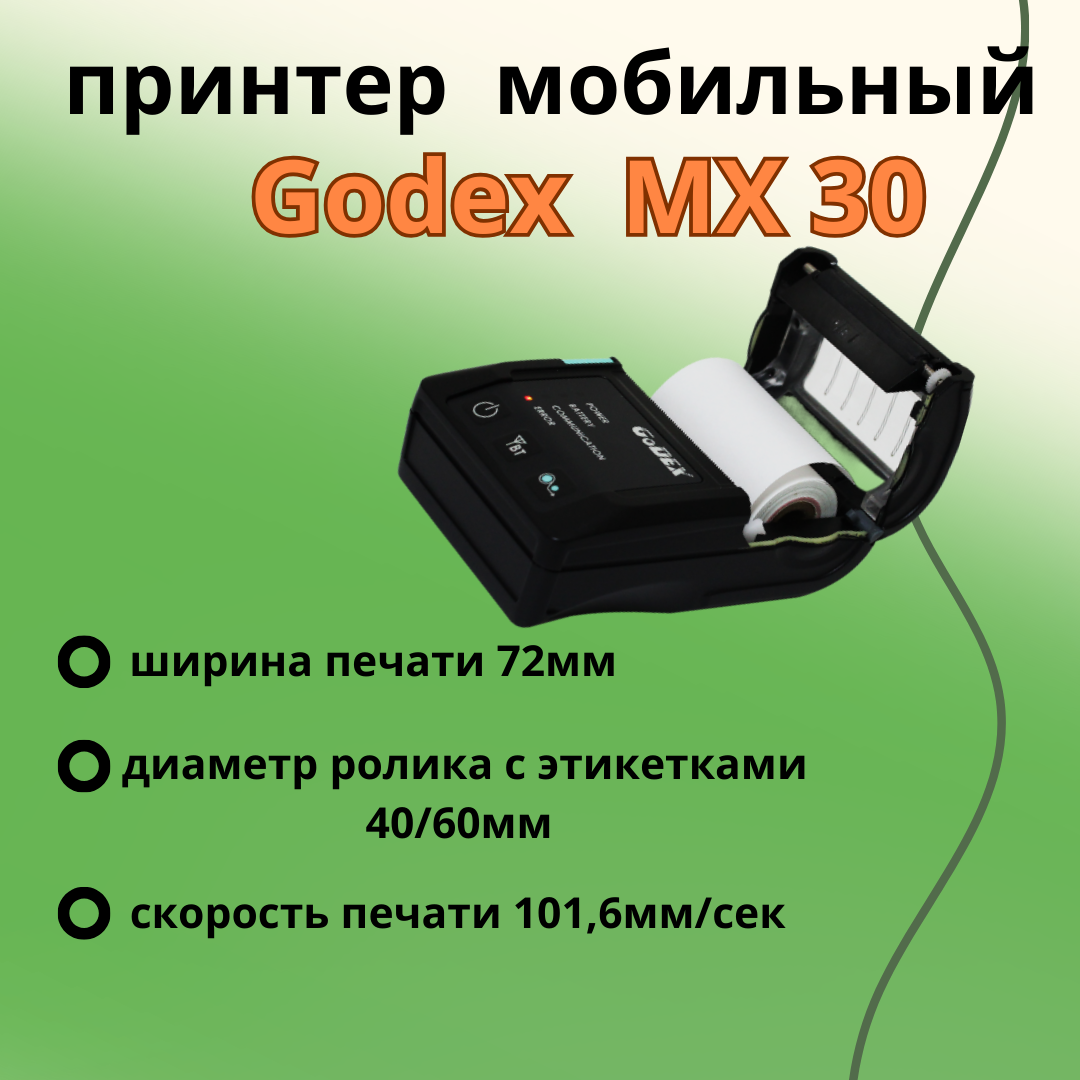 Мобильный принтер этикеток , стикеров для ценников GODEX MX30, Bluetooth информация:
