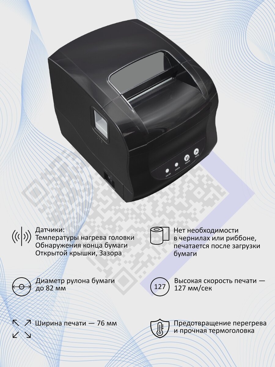 Принтер этикеток POScenter PC-365 (прямая термопечать, 3", USB) черный. информация: