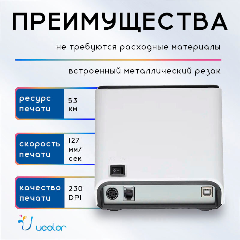Термопринтер для этикеток Ucolor YC-310B USB белый информация: