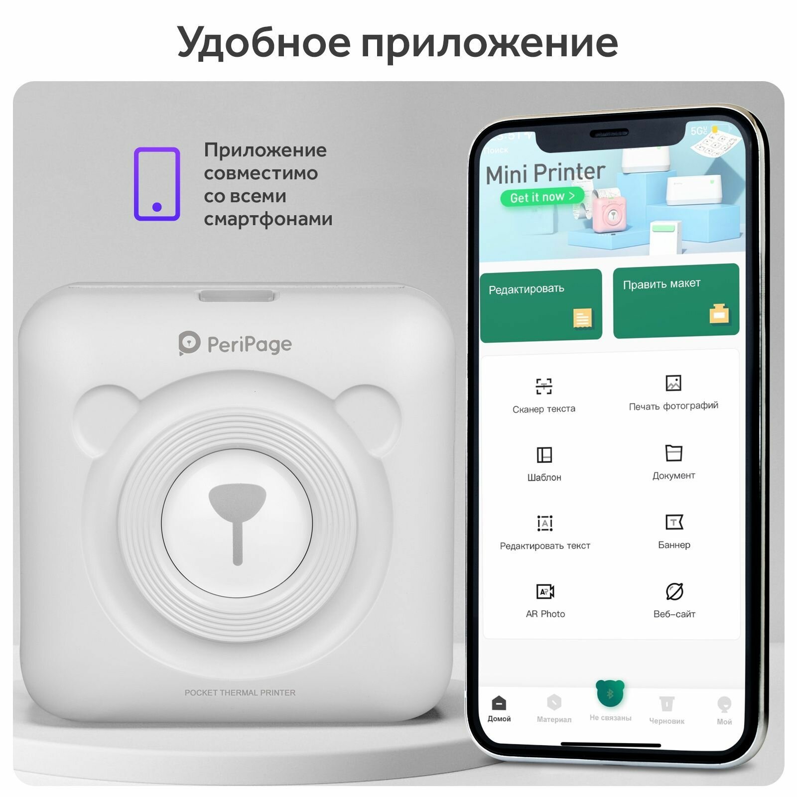 Мини принтер для телефона портативный без чернил
