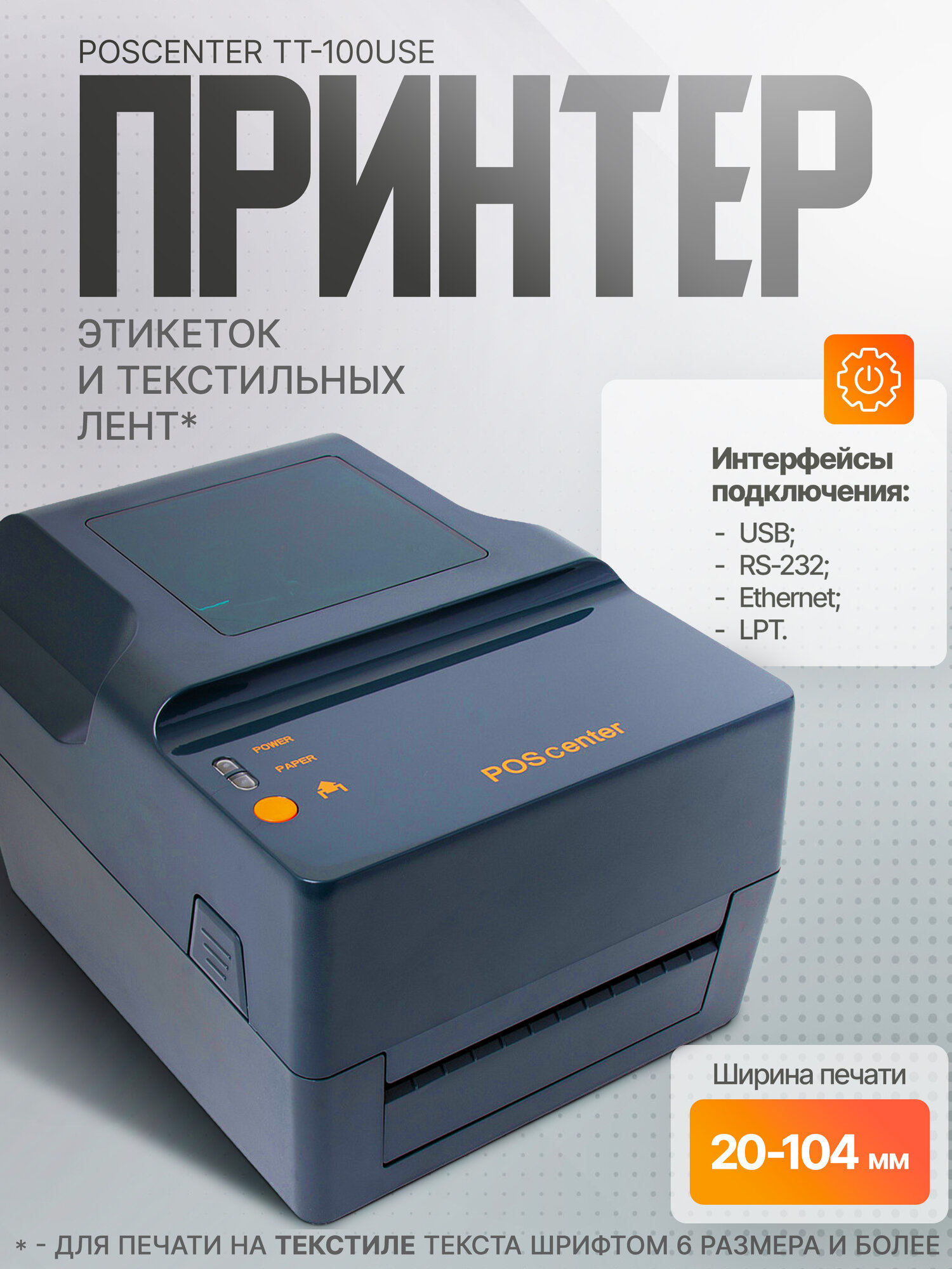 Настольный принтер этикеток и текстильных лент POScenter TT-100USE (термотрансферный) информация: