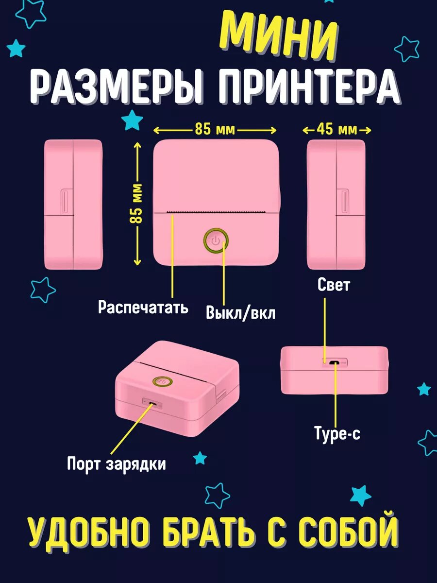Мини принтер портативный для телефона и наклеек беспроводной информация: