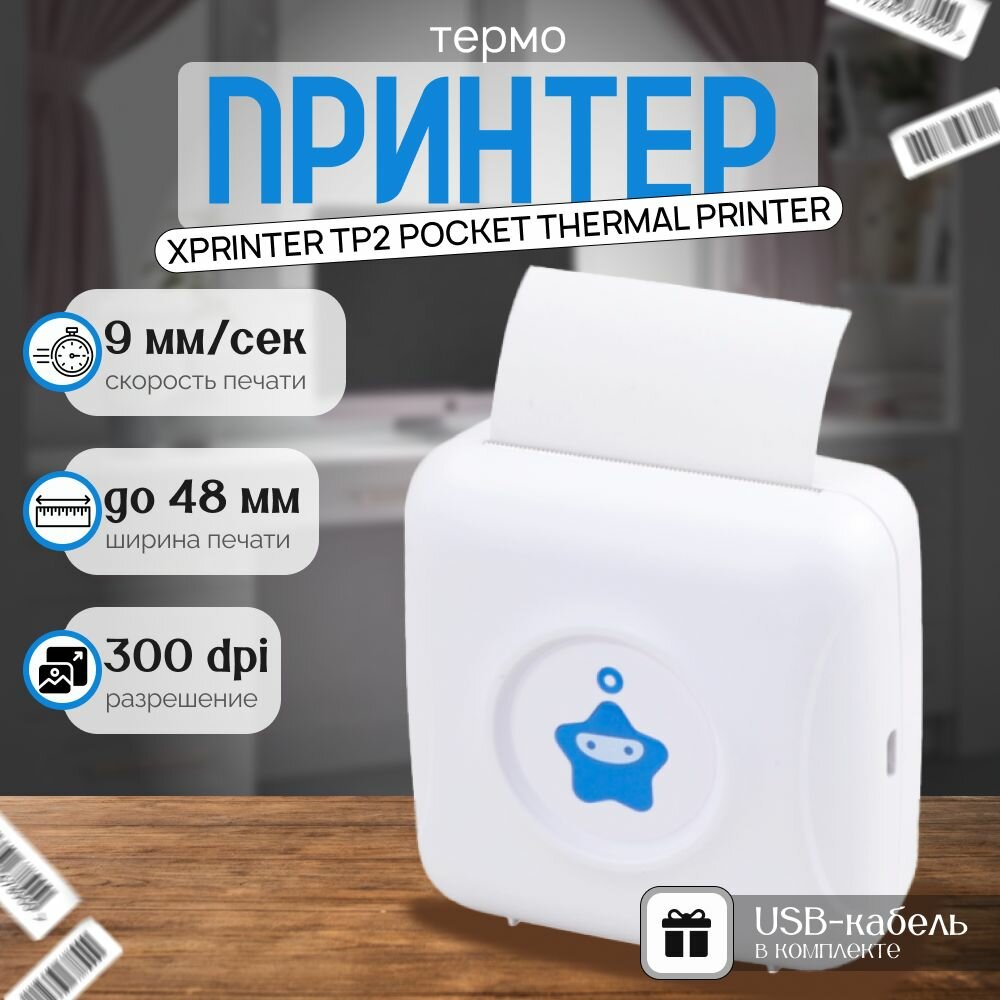 Портативный термопринтер стикеров, наклеек и этикеток Xprinter TP2 Pocket Thermal Printer информация: