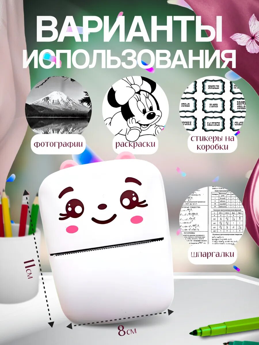 Мини термо принтер детский портативный информация: