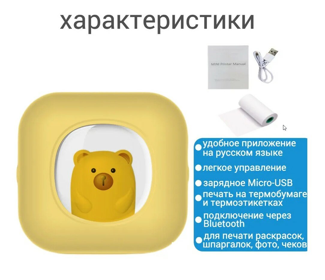 Отзывы на Беспроводной мини принтер / печать фото, этикеток и наклеек мишка