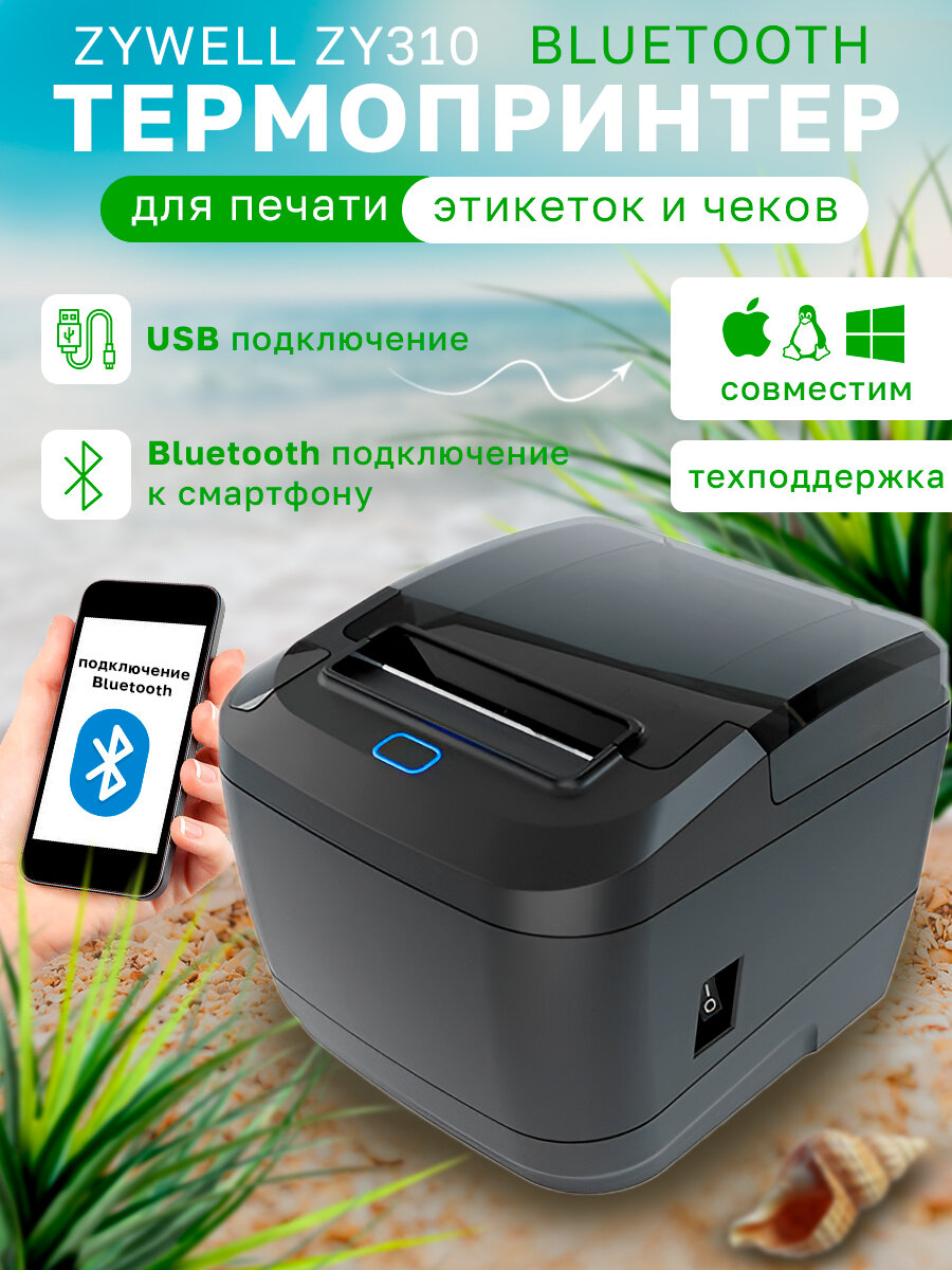 Термопринтер для чеков и этикеток Zywell ZY310 USB+Bluetooth информация: