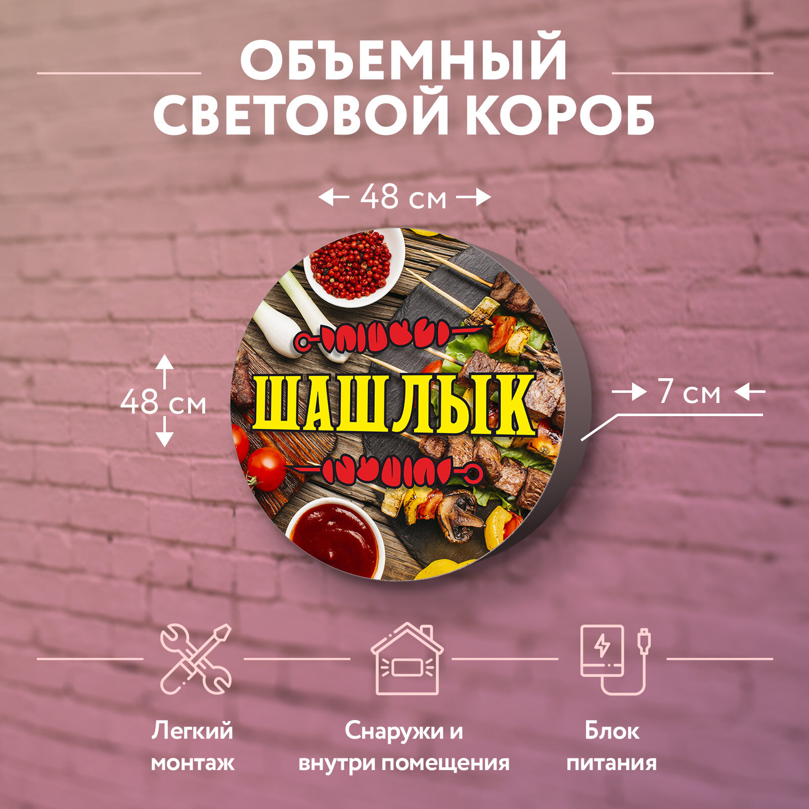 Отзывы на Световая вывеска "Шашлык" Объемный короб с подсветкой Лайтбокс круглый