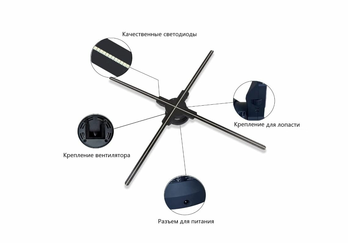Голографический 3D вентилятор 624*624 px (50 см диаметр) светодиодный информация: