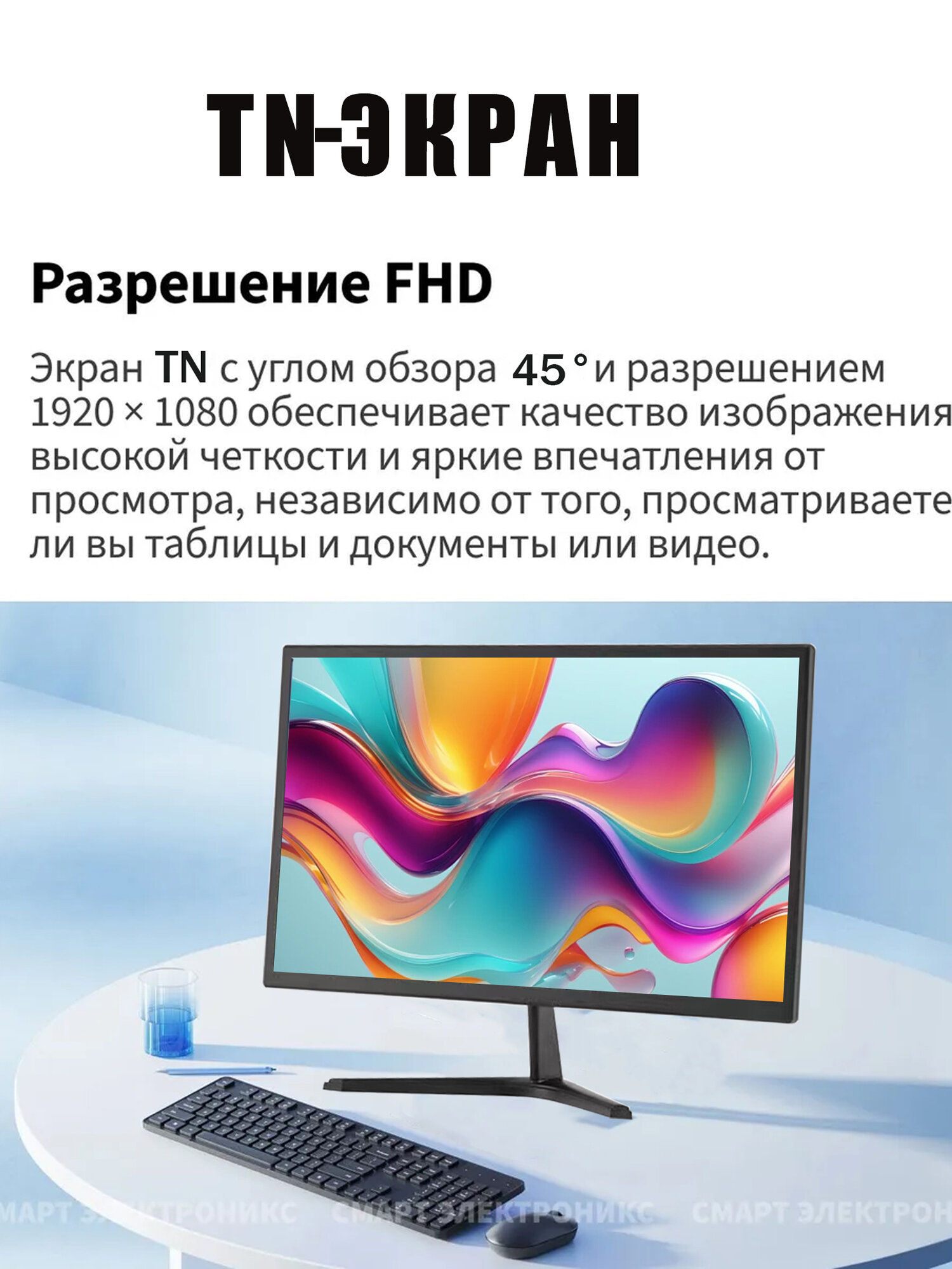 10 цен на 21.5" Офисный монитор, Плоский экран,1К75Гц, защищающий глаза, черный